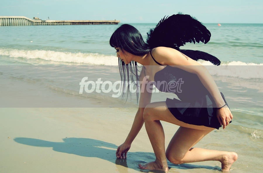 peri baru tiba dari kayangan langsung nyari kulit kerang? hehehe..nice shot..