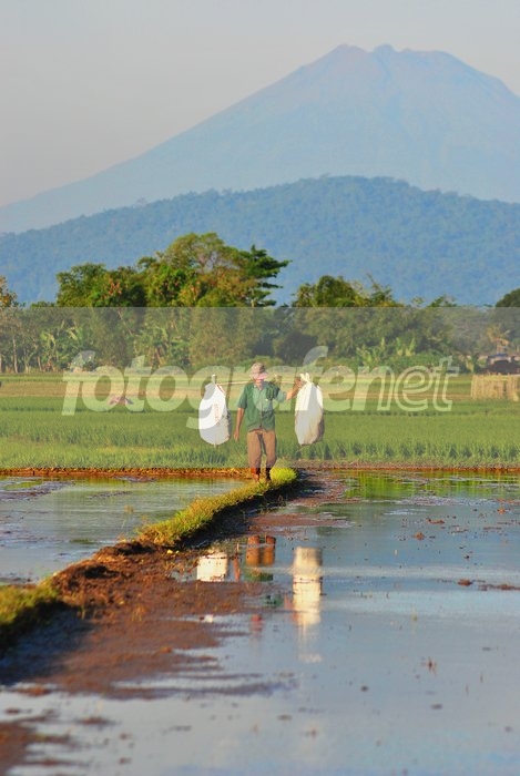 benih padi diangkut melintasi pematang sawah..nsmoga berkenan..