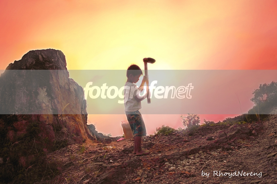 Ini bukan model... tapi bener2 seorang anak yang bekerja untuk mengumpulkan batu dari gunung...