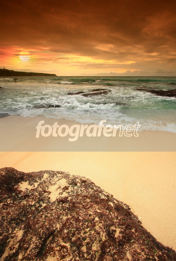Sunrise ditempatkan dengan manis, ombak ditangkap dengan moment yang Pass, Mantab!