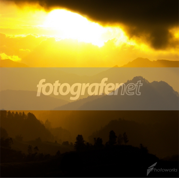 menurut saya awan hitam dan cahaya putih yg OE di crop aja...tektur pegunungan dalam gradasi warna yg sdh cakep ini akan tampil lebih mood...salam.