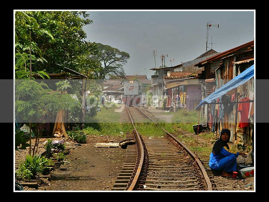 itu ibu harus menyingkir kalau sepur lewat.. dekat sekali dengan rel..