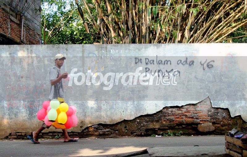 Seorang tukang balon berkeliling menjajakan balon-balon dagangannya.nDate Time Original: 2011:04:23 15:36:21nISO Speed Ratings: 400