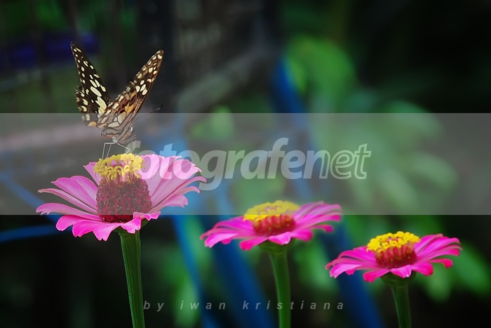 ada tiga bunga yang berjajar.. menambah indah dengan ada kupu disalah satu bunganya, walau back pose.. tetep cantik. salam