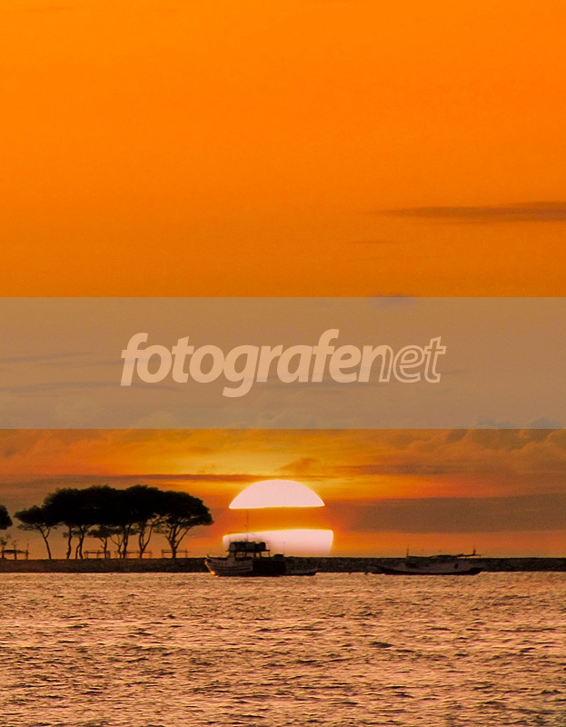 komposisi horison, siluet pepohon menambah indahnya pemandangan sang surya yang akan terbenam, salam