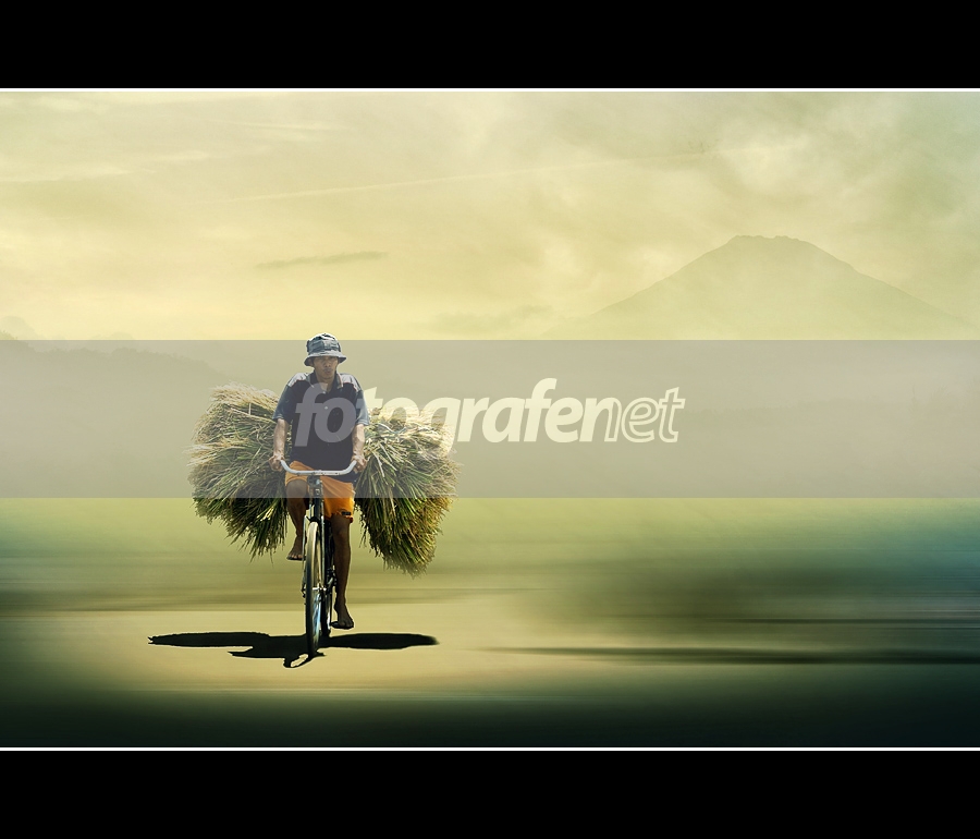 biasanya "ngarit" kearah gunung. "bali ngarit" dengan siluet gunung sangat pas.
