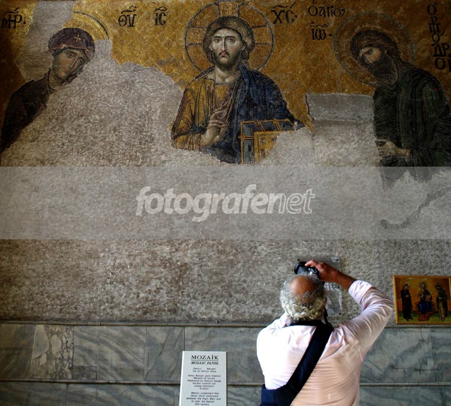 Mau motret mosaik ini terhalang si Bapak lama sekali, ya sudahlah...masukkan ke frame sekalian.