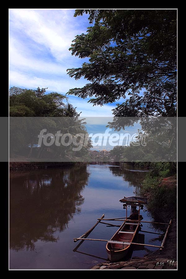 Di sini disebut tambangan, transportasi perahu penyeberangan sungai..