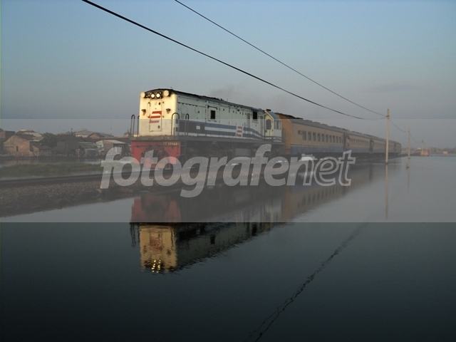 Date Time Original: 2011:08:21 06:18:13nISO Speed Ratings: 100nnKereta Feeder Semarang-Bojonegoro melintas diantara tambak