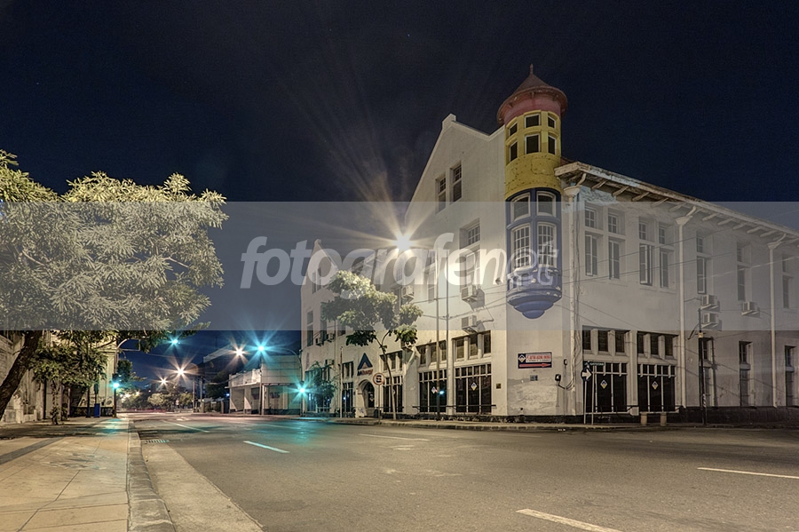 Jalan Veteran di Surabaya yang termasuk kawasan kota lama banyak terdapat bangunan-bangunan peninggalan Belanda yang arsitekturnya sangat menarik untuk dimasukkan dalam komposisi. Sayang saat foto ini diambil saya kurang perhatian terhadap lensa saya yang agak kotor sehingga cukup mengganggu hasil foto. :( Foto ini adalah HDR dari 3 RAW pada 2s, 8s, dan 25s. Cropping + perspective correction di PS serta sedikit cloning untuk menghilangkan kabel yang melintang di atas jalan.
