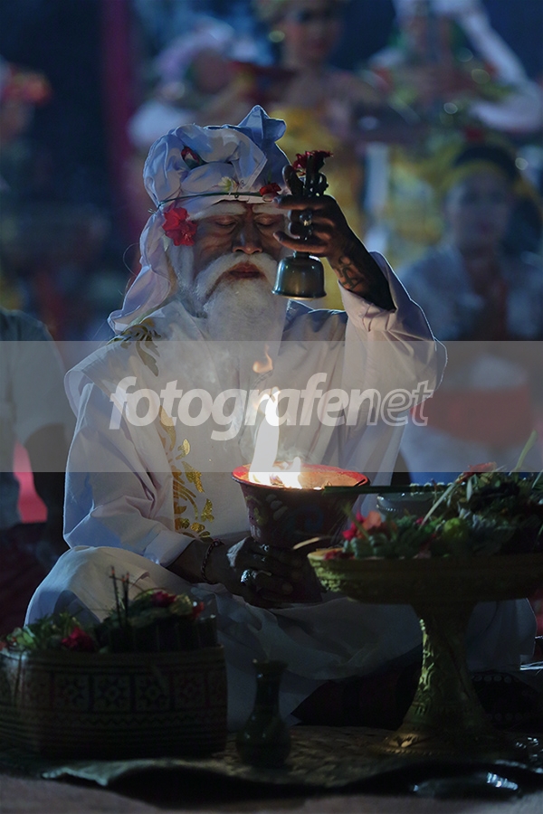 Salah satu penampilan peserta Parade Ogoh-ogoh, sedang melakukan ritual sebelum acara pokok dimulai.