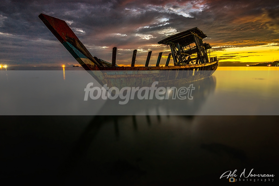Mantap sekali, halus air, refleksi, kompo wide angle yang mengambil efek lebarnya kena sekali ke POI kapalnya..mantap tenan...salam jepret