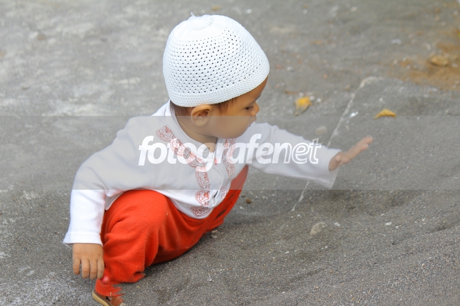Anak ini begitu terlihat menikmati saat bermain pasir.