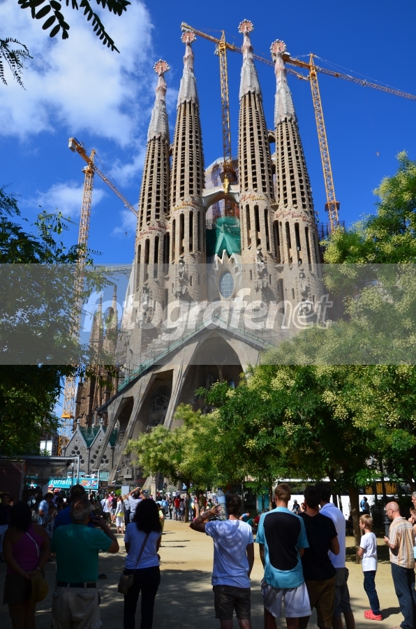 Gereja Expiatori de la Sagrada Família, gereja Katolik Roma raksasa yang masih dalam pembangunan hingga hari ini. Arsitek aslinya Antoni Gaudi (1852-1926)menurut wikipedia.