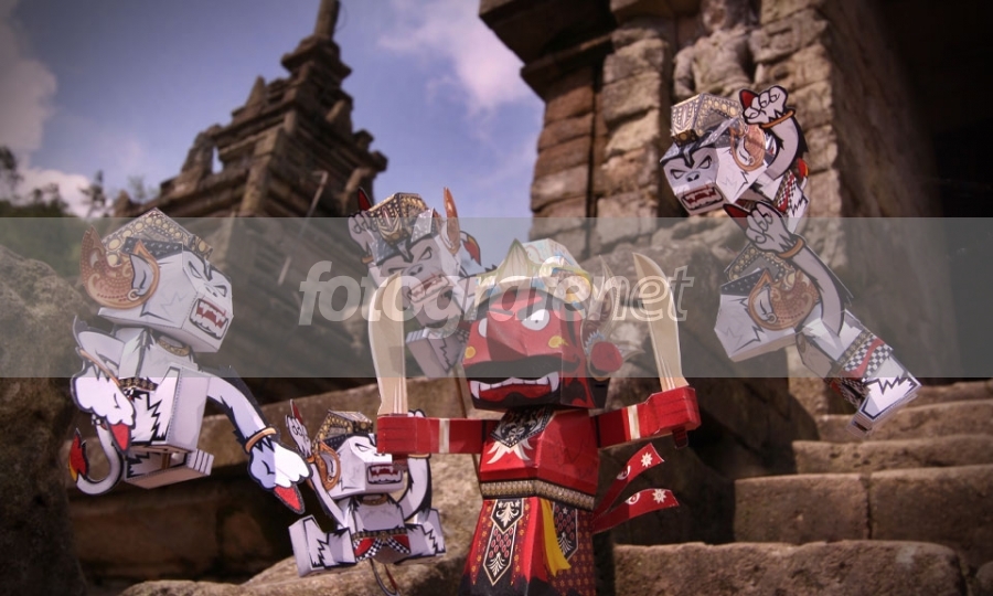 Battle of Hanoman vs Rahwana in Papertoys diorama