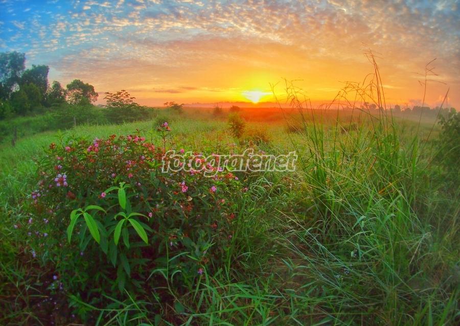 Wow... langitnya mantab bro... IMHO komposisinya bakal lebih ok kalo mayoritas 2/3 justru ke arah langit daripada ke rumput, krn strong point dari foto ini adalah langit biru dan orange fajar-nya itu.