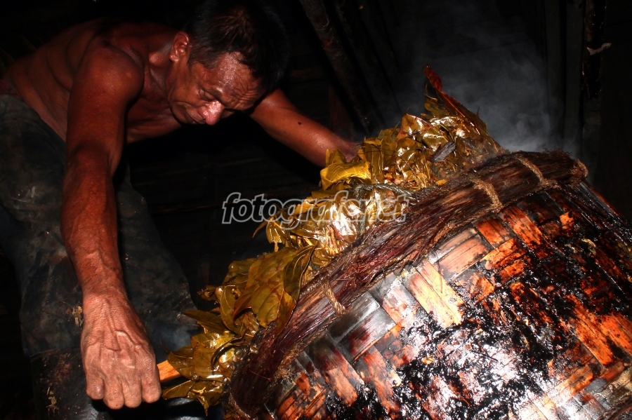 Sepotong kisah petani gambir, daun yang telah direbus tersebut akan diperas, hasil perasan itulah yang nantinya akan menjadi gambir.